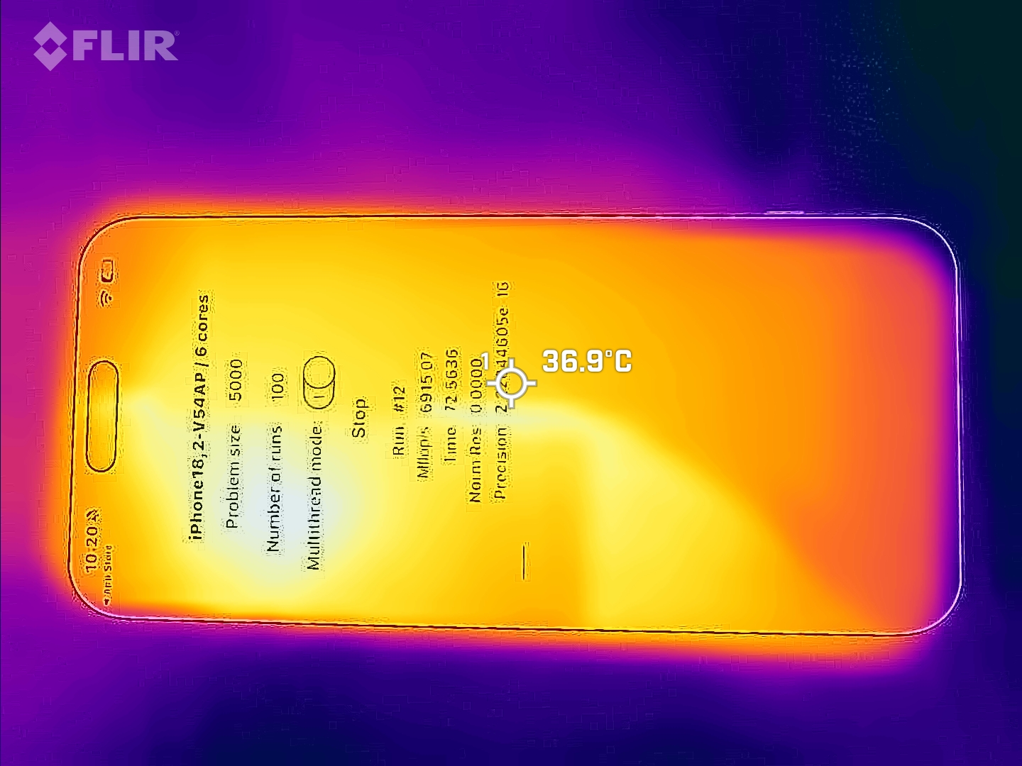 在正常使用过程中,iPhone 17 Pro Max 保持凉爽宜人,但在最大负载情况下,表面温度会升至 42°C。虽然触感温热,但仍符合热安全标准。