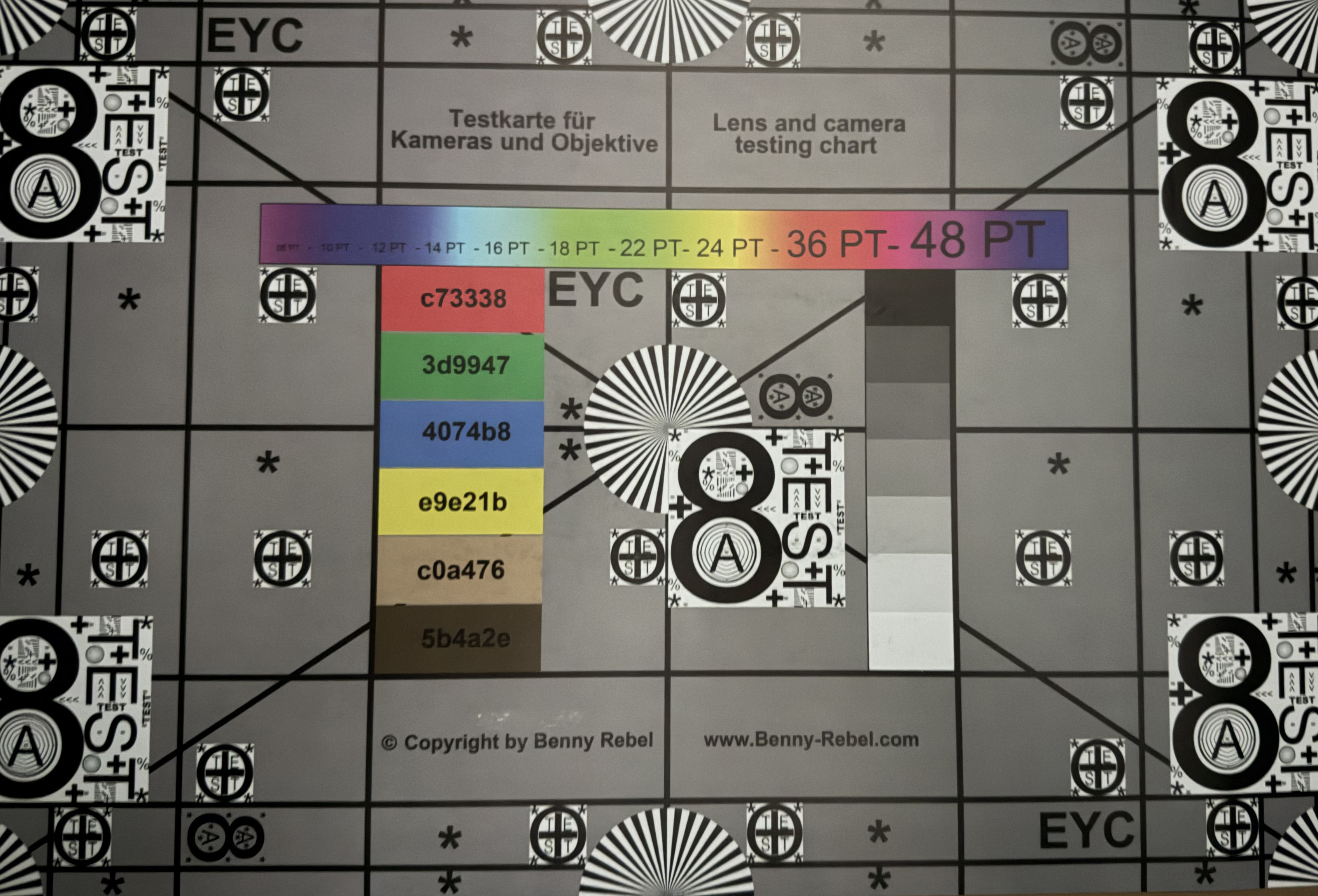 Daylight imageDaylight imageUltra-wide angleLow light image在可控的照明条件下,测试图图像几乎完全清晰。在表现参考色方面,主镜头的表现也令人印象深刻。只有在某些绿色和蓝色色调中才会出现与目标值的轻微偏差。