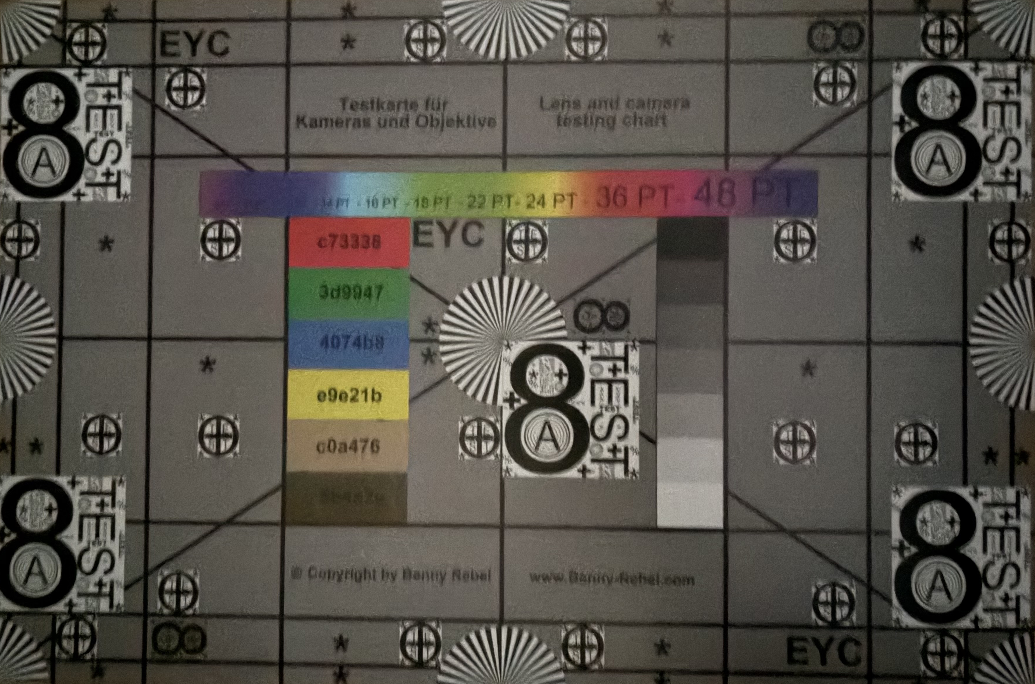 Main cameraMain cameraUltra wide-angleLow light在可控光照条件下,主摄像头再次证明了它能准确显示色彩。即使只有 1 勒克斯的残余光,测试图依然清晰可辨,而且拍摄效果相当锐利,几乎没有其他智能手机摄像头能做到这一点。