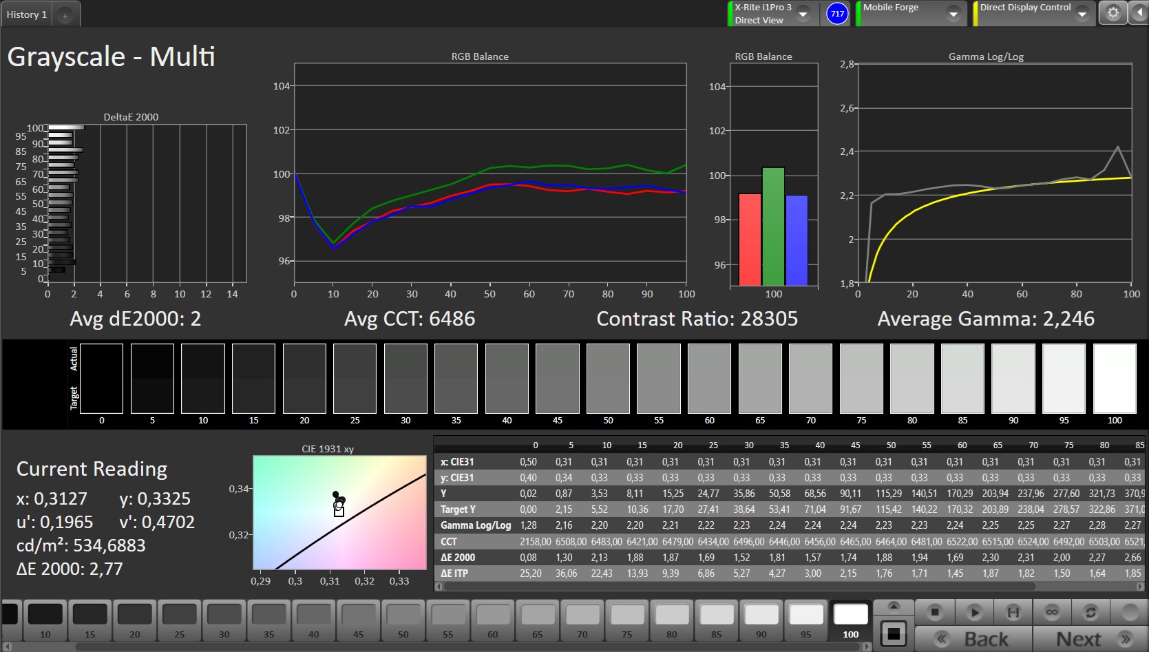 ΔE Greyscale Calman: 2 | ∀{0.09-98 Ø5}