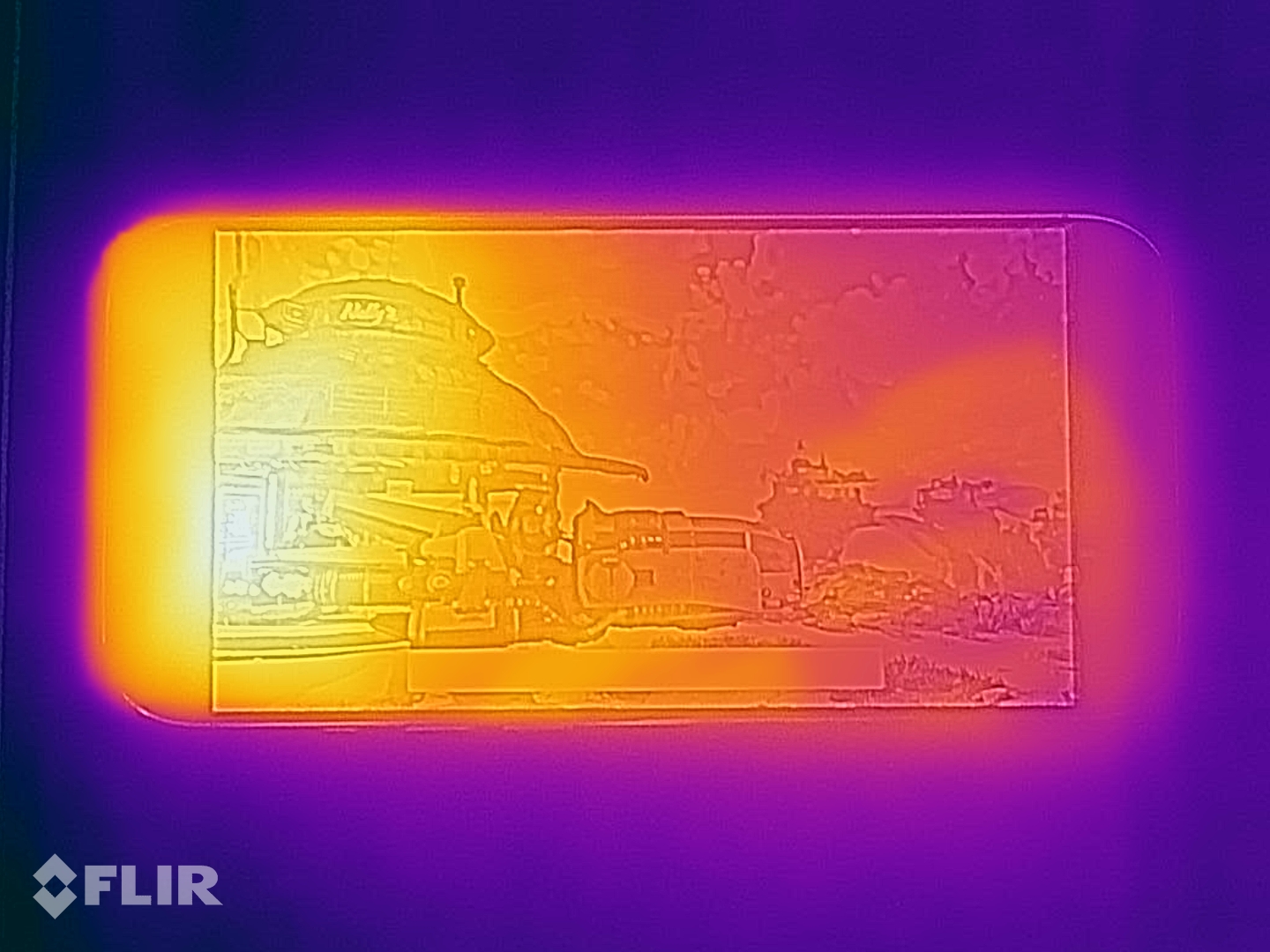(+) In idle usage, the average temperature for the upper side is 27.6 °C / 82 F, compared to the device average of 32.9 °C / 91 F.