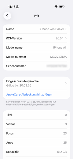 | Apple iPhone Air Apple A19 Pro ⎘ Apple A19 Pro 5-Core GPU ⎘ 12 GB Memory, 512 GB SSD | Amazon: 1. $99.00 Apple iPhone Air MagSafe Bat... 2. $1,429.00 iPhone Air Space Black, 512GB 3. $119.00 Apple AirPods 4 Wireless Ear... List Price: 1449€ | 165 g | Apple 512GB NVMe | 6.50" 2736x1260 463 PPI OLED | |