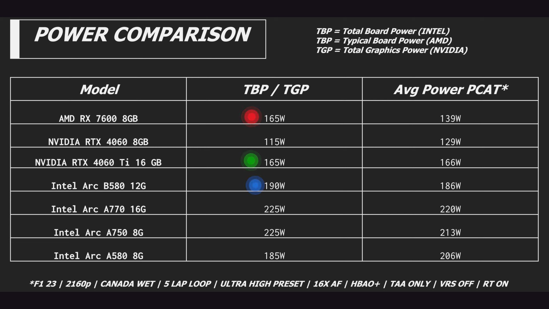 尽管如此,英特尔还是改进了 Arc A580 的功耗。LTT 显示,在 F1 23 中,Arc A580 的功耗为 206 W,比 Arc B580 高出 11%。