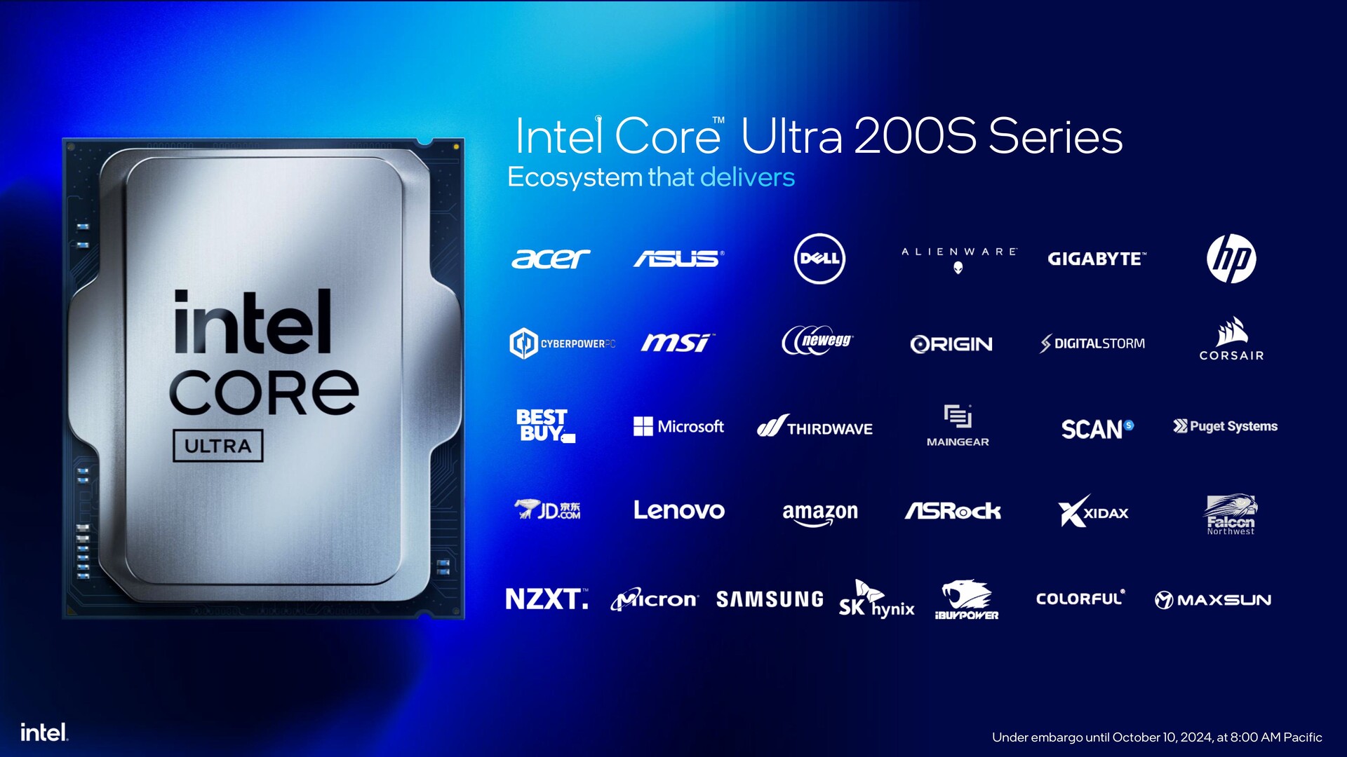 预计从 10 月 24 日起,所有主要的 PC OEM 厂商和系统集成商都将提供 Arrow Lake-S 台式机。
