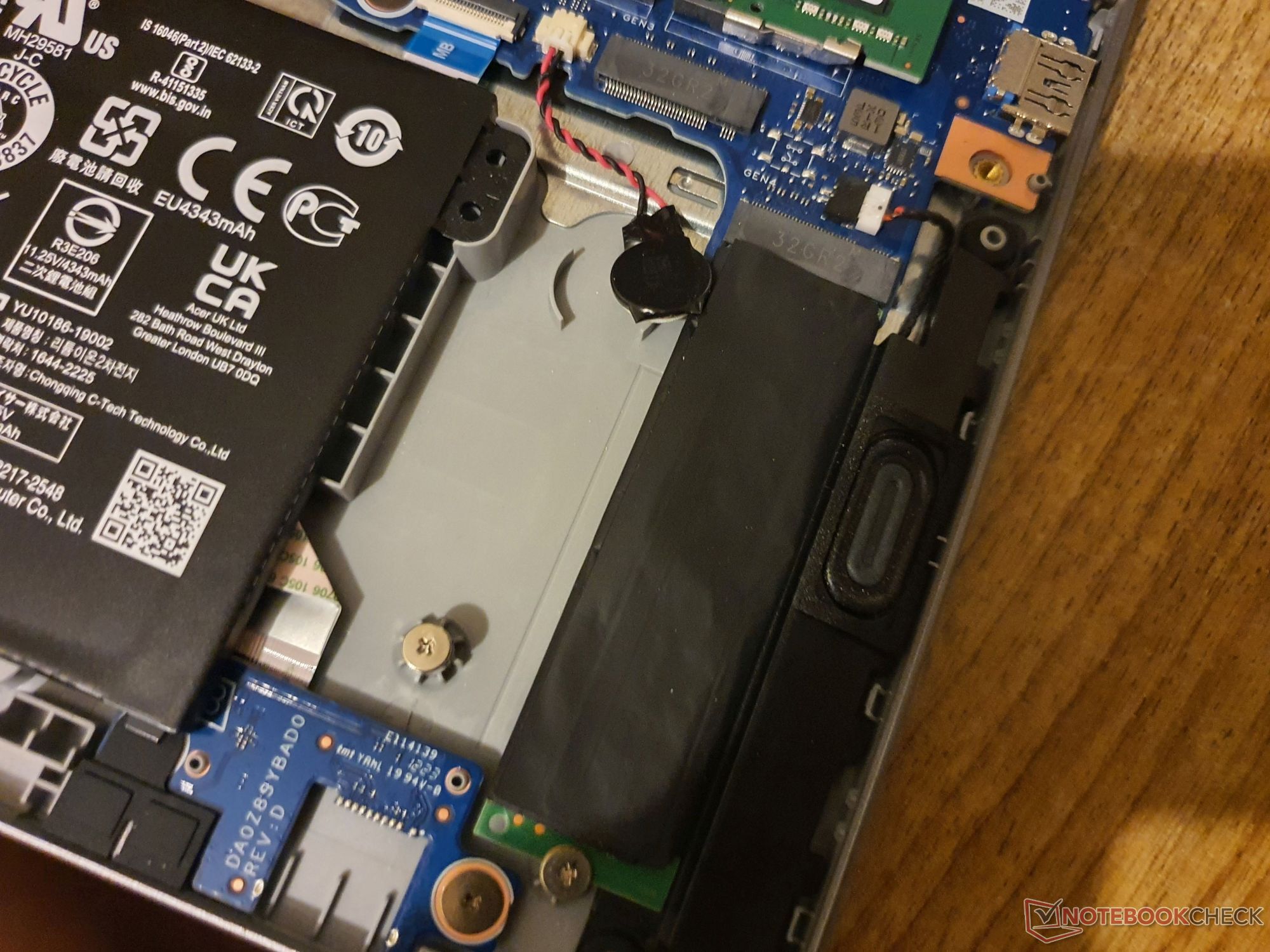 卸下 10 颗十字螺丝后,只需使用塑料卡或铲刀工具即可取下盖子。里面有两个内存组、两个 M.2 2280 插槽、可交换的 WLAN 模块以及拧紧的电池。如果需要对散热系统进行维护,也可以很方便地将其拆开。
