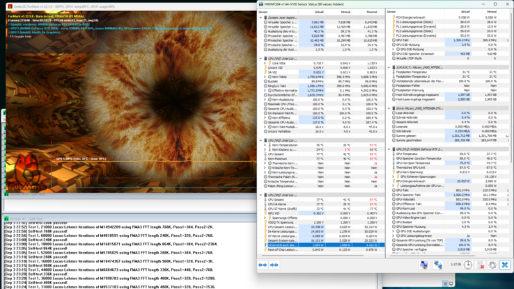 | Prime95+FurMark | 2.18 | 864 | 76 | 71 |