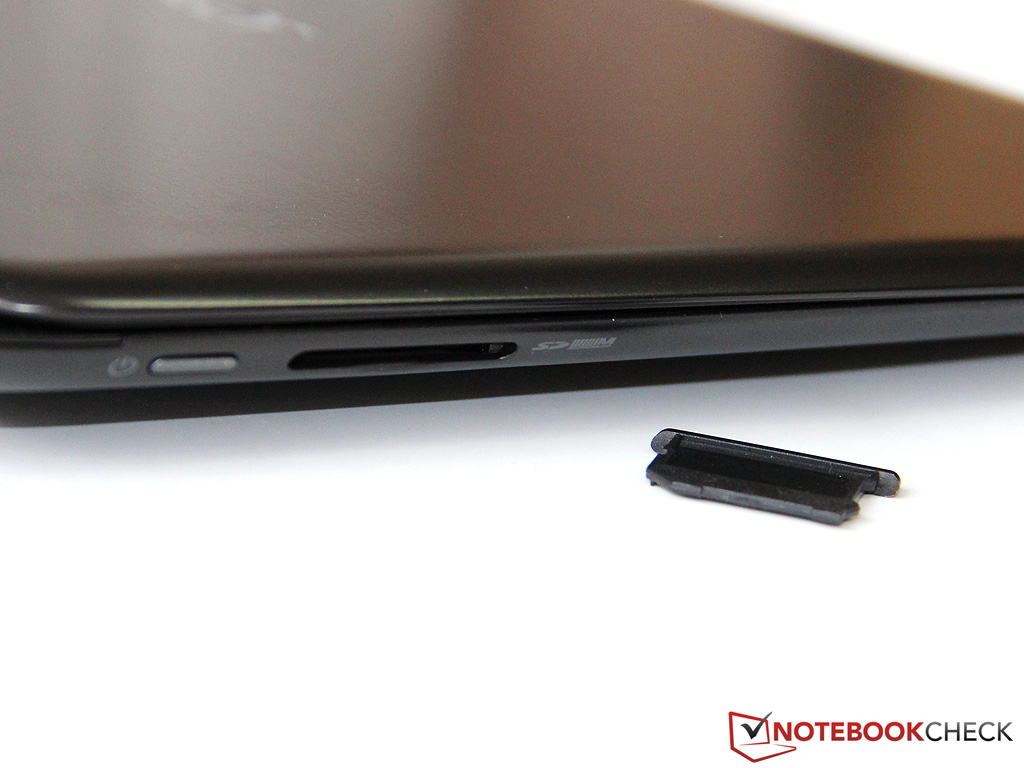 In addition to the two USB 3.0 ports the Aspire also features an HDMI (VGA adapter is included) and the versatile Thunderbolt port - an absolute rarity in current notebooks, except for a couple of Apple models. We also find a side-mounted card reader (SD, MMC) and the obligatory headset jack. Both of these are quite well positioned, in contrast to the somewhat difficult to reach rear ports.