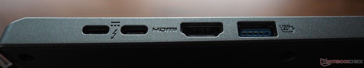 如果不考虑没有读卡器的问题,接口还是相当不错的。除了一个音频插孔、一个 HDMI 2.1 端口和一个 Kensington 锁插槽外,宏碁还为 14 英寸机型配备了四个 USB 端口。正如开头提到的,Type-C 接口支持现代的 Thunderbolt 4,包括 Power Delivery 和 DisplayPort 1.4。由于所有端口都位于两个侧板的后部区域,因此插入的线缆很少会碍事。