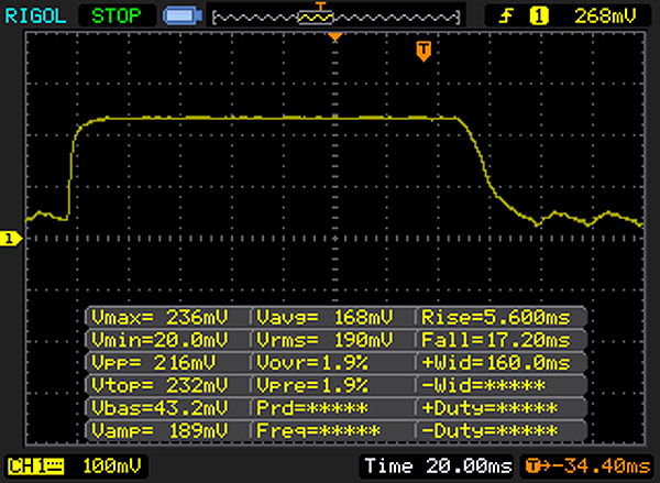 | 22 ms ... rise ↗ and fall ↘ combined | ↗ 5 ms rise | |