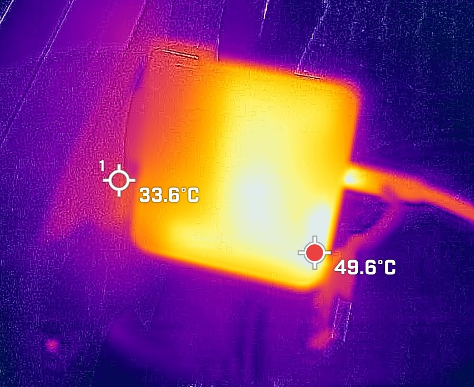 (±) The bottom heats up to a maximum of 44 °C / 111 F, compared to the average of 37.3 °C / 99 F