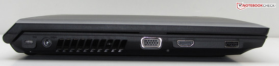 The number of the ports and their location is identical to the Lenovo B570-M58G4GE, although the Lenovo B570e-N2F23GE lacks the USB 2.0/eSATA combination port. In addition, the fingerprint reader is also missing. Otherwise all ports one might need are included, even though USB 3.0 is not offered on any notebook in the Lenovo B570 and B570e series.