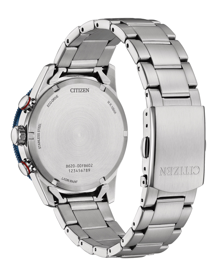 CA4716-50L 的机械性能由Caliber B620 Eco-Drive 机芯驱动。.作为一款光动力机芯,它可将自然光和人造光转化为能量,在正常使用条件下,充满电后可维持约 9 个月的动力储备。该机芯具有可测量长达 60 分钟的 1/5 秒计时码表、用于区分上午/下午的 24 小时小表盘以及位于 4 点钟和 5 点钟刻度之间的日期窗口。B620 还具有电量不足警告和防止过度充电功能。