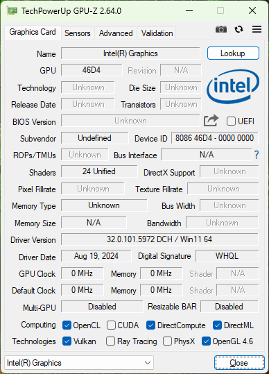 | Average Intel UHD Graphics 24EUs (Alder Lake-N) (20.3 - 25.4, n=2) | |