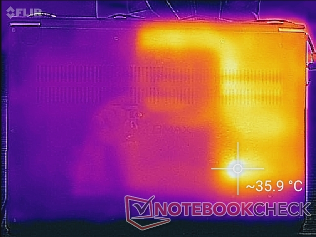 (-) The palmrests and touchpad can get very hot to the touch with a maximum of 44.8 °C / 112.6 F.