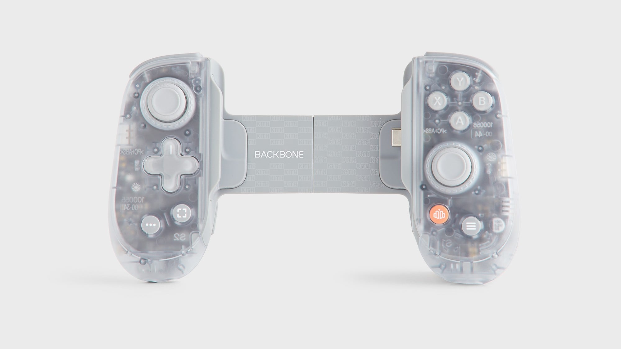 这款限量版 Backbone Pro 控制器采用白色半透明底盘,浅灰色按钮(Backbone 按钮除外)配以白色文字。夹子上有 Kith 的图案和 Backbone 的品牌标志,文字为粗体白色。控制器采用 Xbox 布局,不同于 Backbone One 死亡搁浅 2 版则采用了 PlayStation 布局。