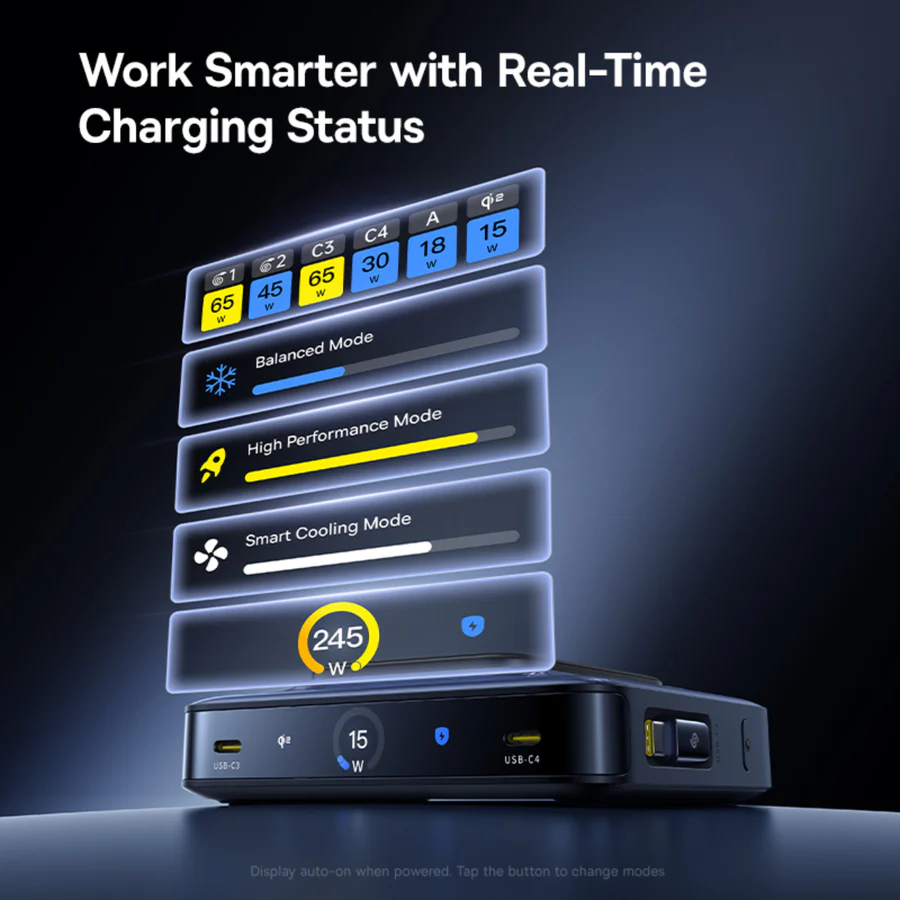 此外,Baseus 还支持 BPS3.0 智能功率分配,可自动分配连接设备的功率,以实现最佳效率和安全性。该配件采用氮化镓芯片,进一步确保了高能效,同时将热量降至最低。它的尺寸为 7.8 x 6 x 2.5 英寸(198.1 x 152.4 x 63.5 毫米),重约 1.5 磅(680 克)。