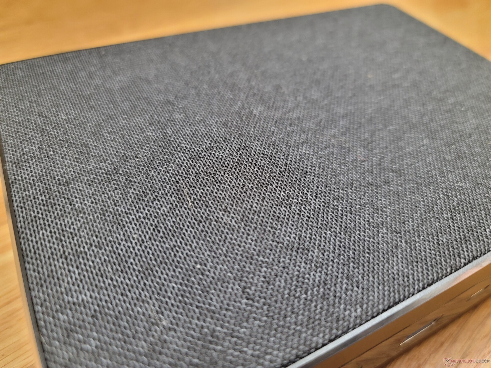 这款机箱的金属侧面和顶部的透气软网让人感觉很坚固。特别是后者是Beelink的首创,因为该公司以前的迷你电脑都是以塑料或金属为顶层。可拆卸的网罩为整体设计增加了质量或奢华的元素。