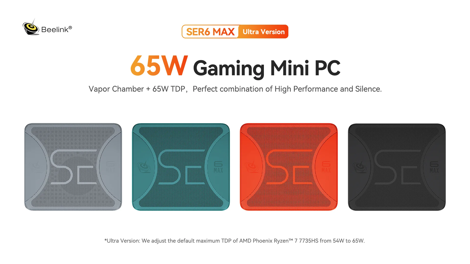 通常情况下,Ryzen 7 7735HS有35瓦的TDP,尽管AMD允许制造商将其提高到54瓦。Ryzen 7 7735HS使其TDP达到65W。Ryzen 7 7735HS据说其TDP与入门级台式机处理器如 Ryzen 5 5600X.据称,SER6 Max有一个强大的冷却解决方案,并添加了一个蒸汽室,以尽量减少热节流的机会。