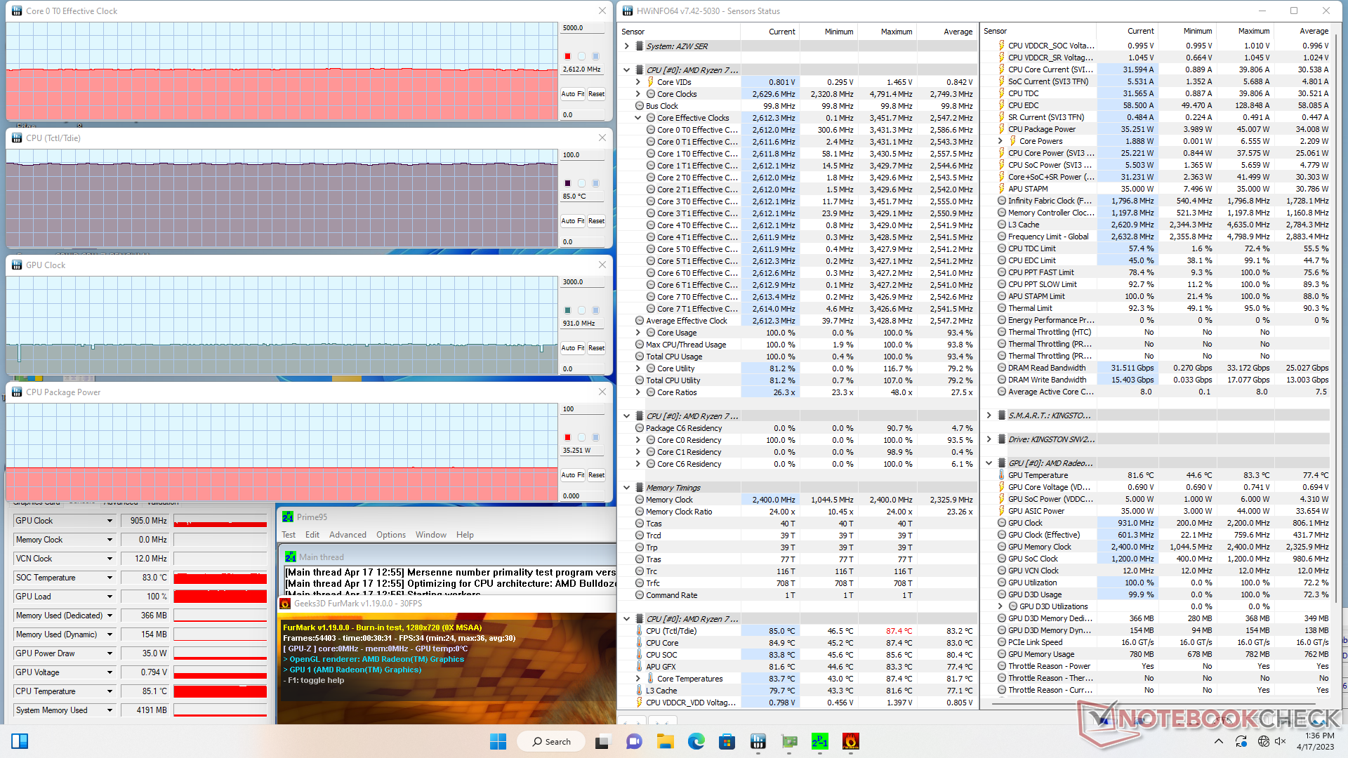 | Average AMD Ryzen 7 7735HS, AMD Radeon 680M (1387 - 1736, n=7) | |