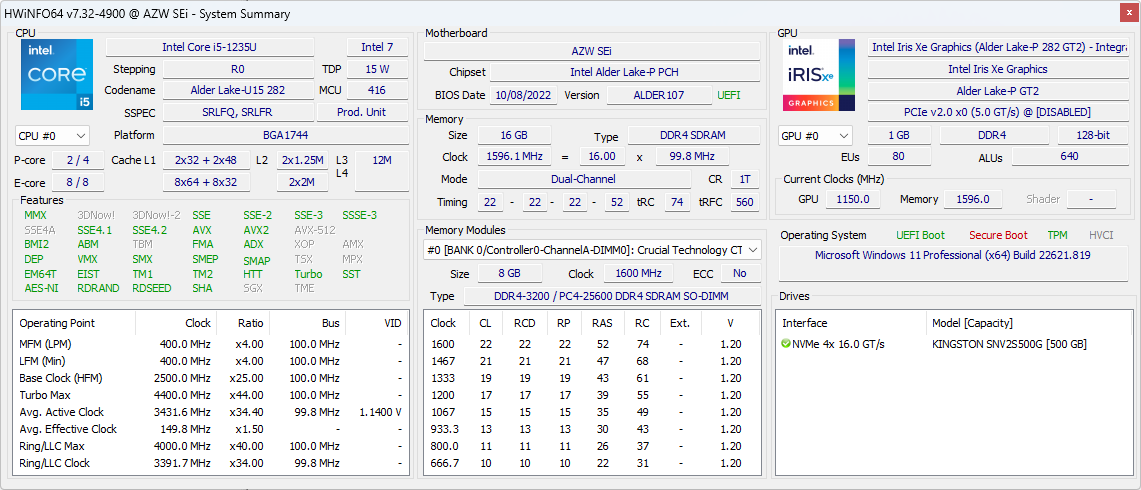 | Average Intel Core i5-1235U (1444 - 1698, n=8) | |