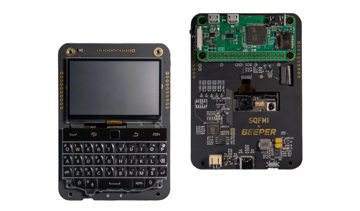 此外,SQFMI还集成了一个2.7英寸的LCD显示屏,输出功率为400 x 200像素,以及一个带背光的三排键盘和一个小型触摸板。虽然看起来SQFMI直接从一个旧黑莓手机中提取了一个键盘,但它实际上是Solder Party BB Q20键盘,源自黑莓经典。作为参考,BeepBerry利用了Raspberry Pi OS Lite,并有一个Raspberry Pi RP2040来解释键盘输入。