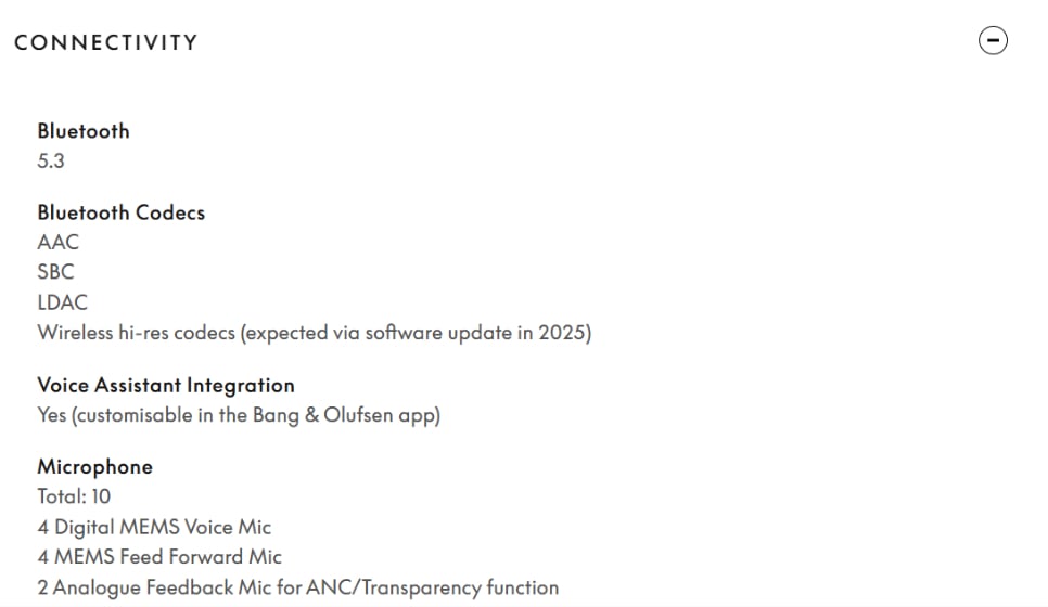 同样,该公司也更新了其产品说明书,不再承诺今年通过软件更新增加 3 设备多点连接功能。因此,如果 Bang & Olufsen 在没有进一步澄清的情况下悄然放弃这一承诺,我们也不会感到惊讶。