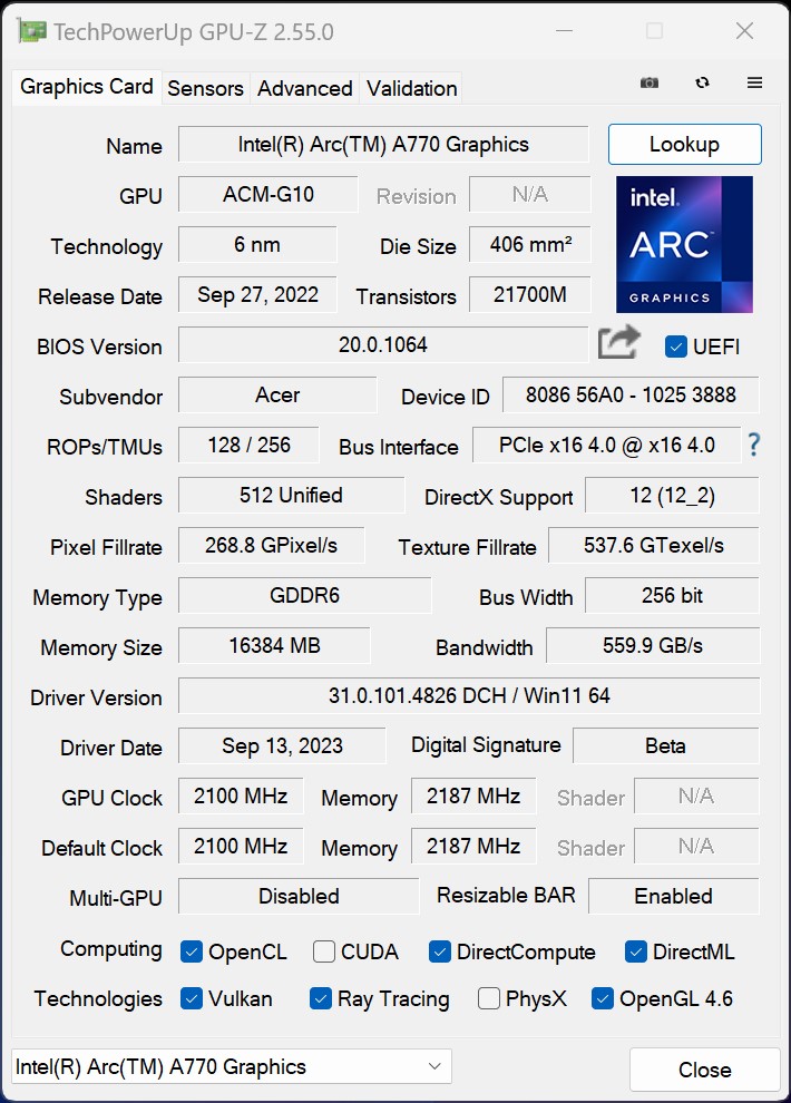 | Intel Arc A770 | |