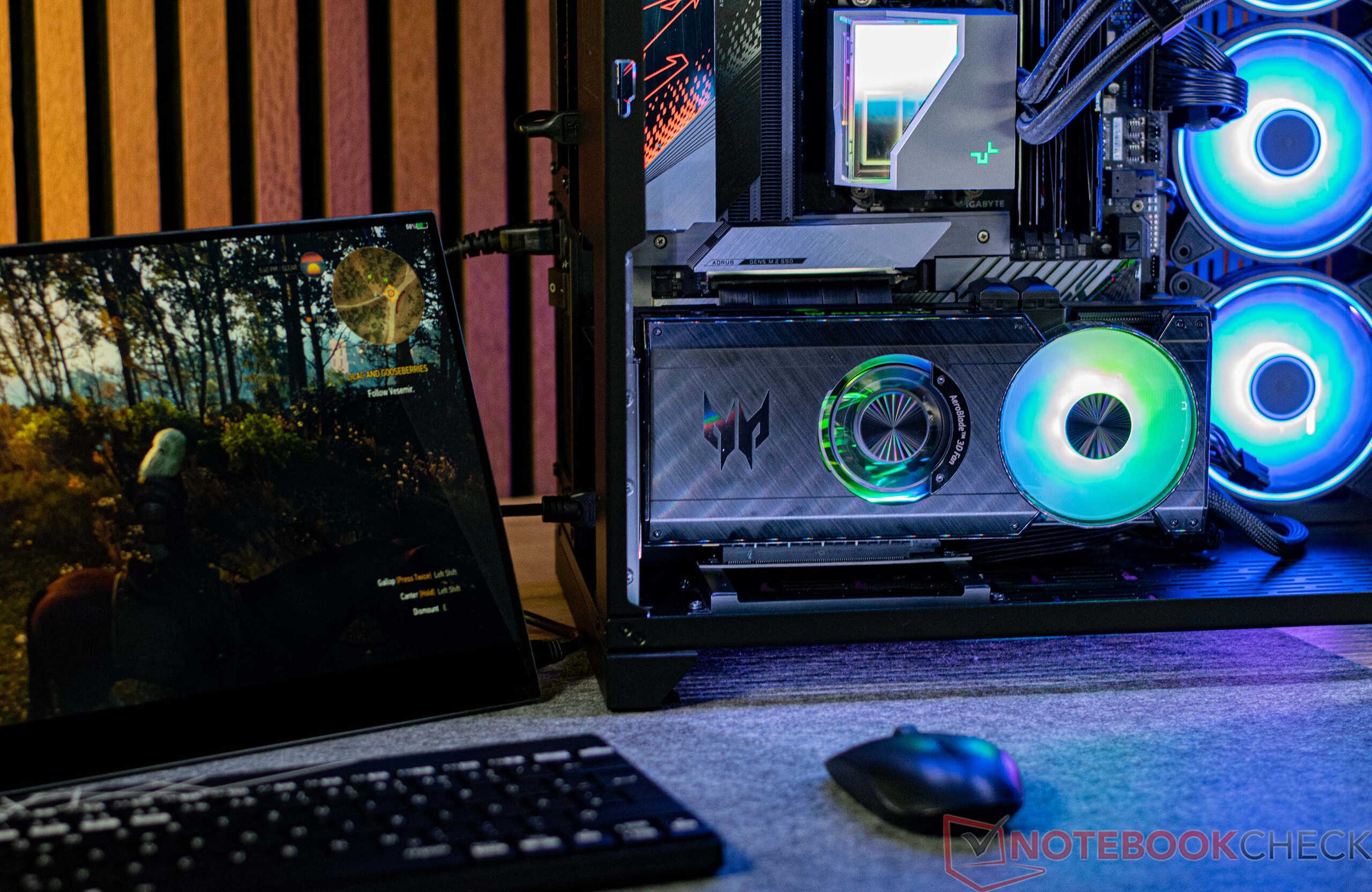 在宏碁掠夺者 BiFrost Arc A770 OC 的速度方面,我们看到图形芯片的基本时钟频率为 2,200 MHz,比英特尔的参考型号至少高出 100 MHz。提升速度为 2,400 MHz,在我们的所有测试中都能保持不变。视频存储速度为 2,190 MHz,存储带宽为 560 GB/s。这明显高于直接竞争对手,如 AMD Radeon RX 7700 XT或 NvidiaGeForce RTX 4060 Ti.宏碁规定我们测试设备的功耗为 210 瓦。当使用随附工具激活涡轮增压模式时,宏碁掠夺者 BiFrost Arc A770 OC 的功耗可高达 235 瓦。不过,我们下面的所有测试都是在默认模式(210 瓦)下进行的。此外,还提供可将功耗控制在 160 瓦的静音模式。