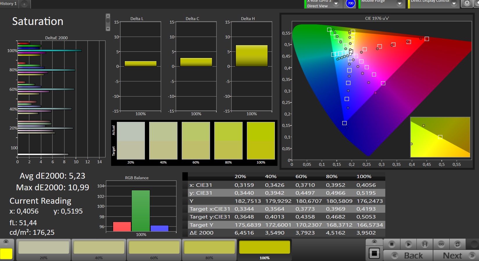 | Greyscale dE 2000 * | 6.2 | 3.1 50% | 2.2 65% | 7.7 -24% |