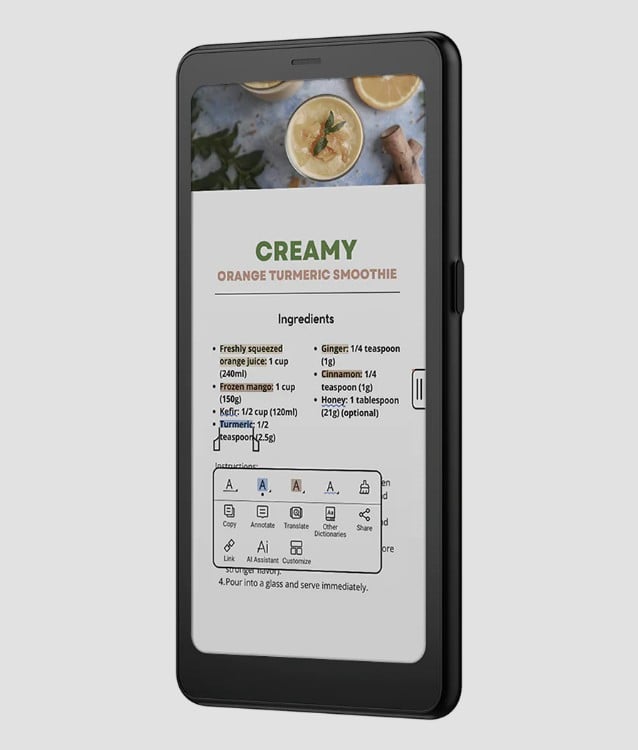 有了新的彩色显示屏,用户现在可以阅读他们喜爱的彩色书籍、杂志、文档和漫画。使用 InkSense Plus 触控笔(单独销售),他们可以使用各种颜色的笔批注文档、突出显示文本和记笔记。