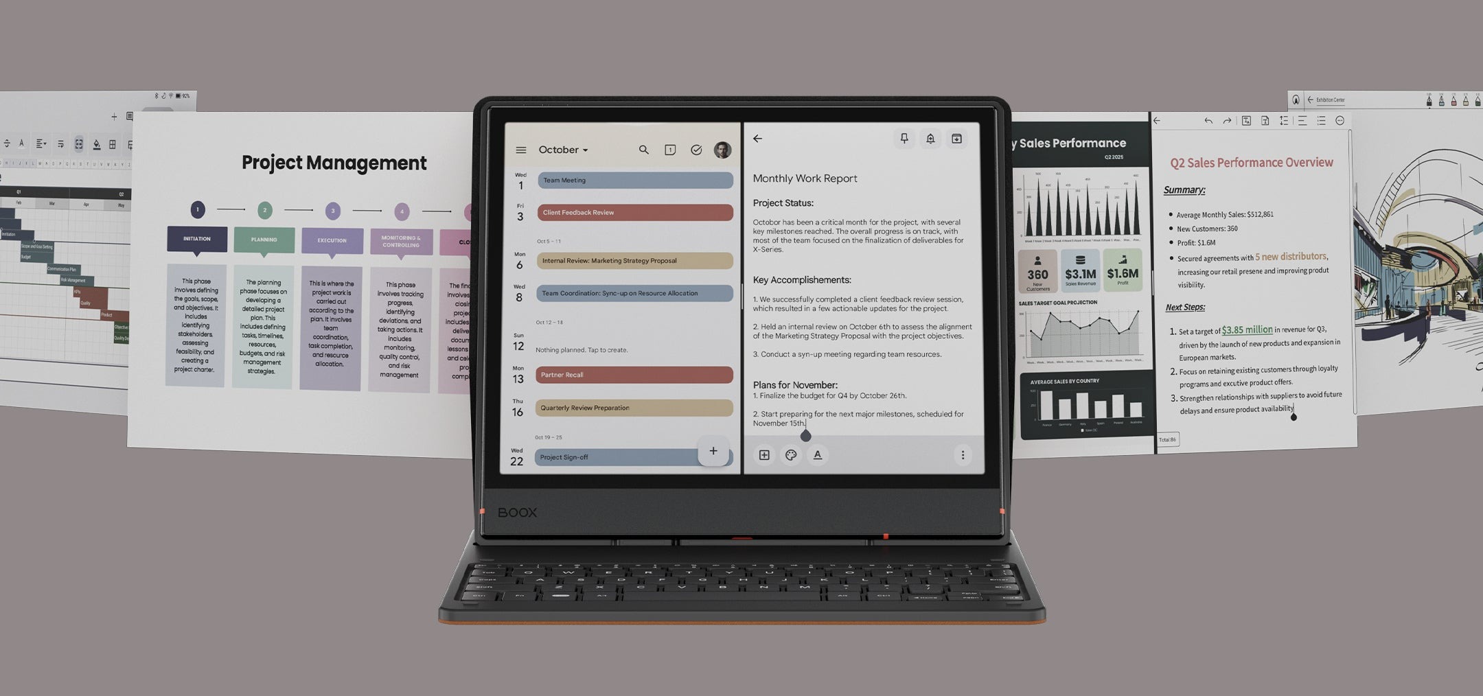 Boox 随产品附送一支带有五个额外笔尖的触控笔和一个可纵向或横向使用的磁性保护套。如果您选择键盘盖捆绑包,则可享受约 33 美元/33 欧元的折扣,支付价格为 606.99 美元/606.99 欧元,而不是 639.98 美元/639.98 欧元。