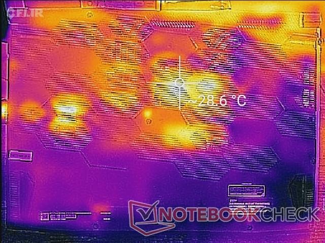 (+) The palmrests and touchpad are cooler than skin temperature with a maximum of 27.6 °C / 81.7 F and are therefore cool to the touch.