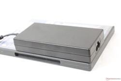 当CPU和GPU都处于100%的利用率时,我们能够从中小型(约13.6 x 6.6 x 2.9厘米)150瓦交流适配器中记录到175瓦的最大消耗。由于系统要求的功率可能超过交流适配器的额定功率,因此该模型可能受益于更高容量的适配器。在运行这种极端负载时,预计充电速度会大大减慢。值得庆幸的是,典型的游戏负载将消耗大约100W,完全在交流适配器的额定输出范围之内。
