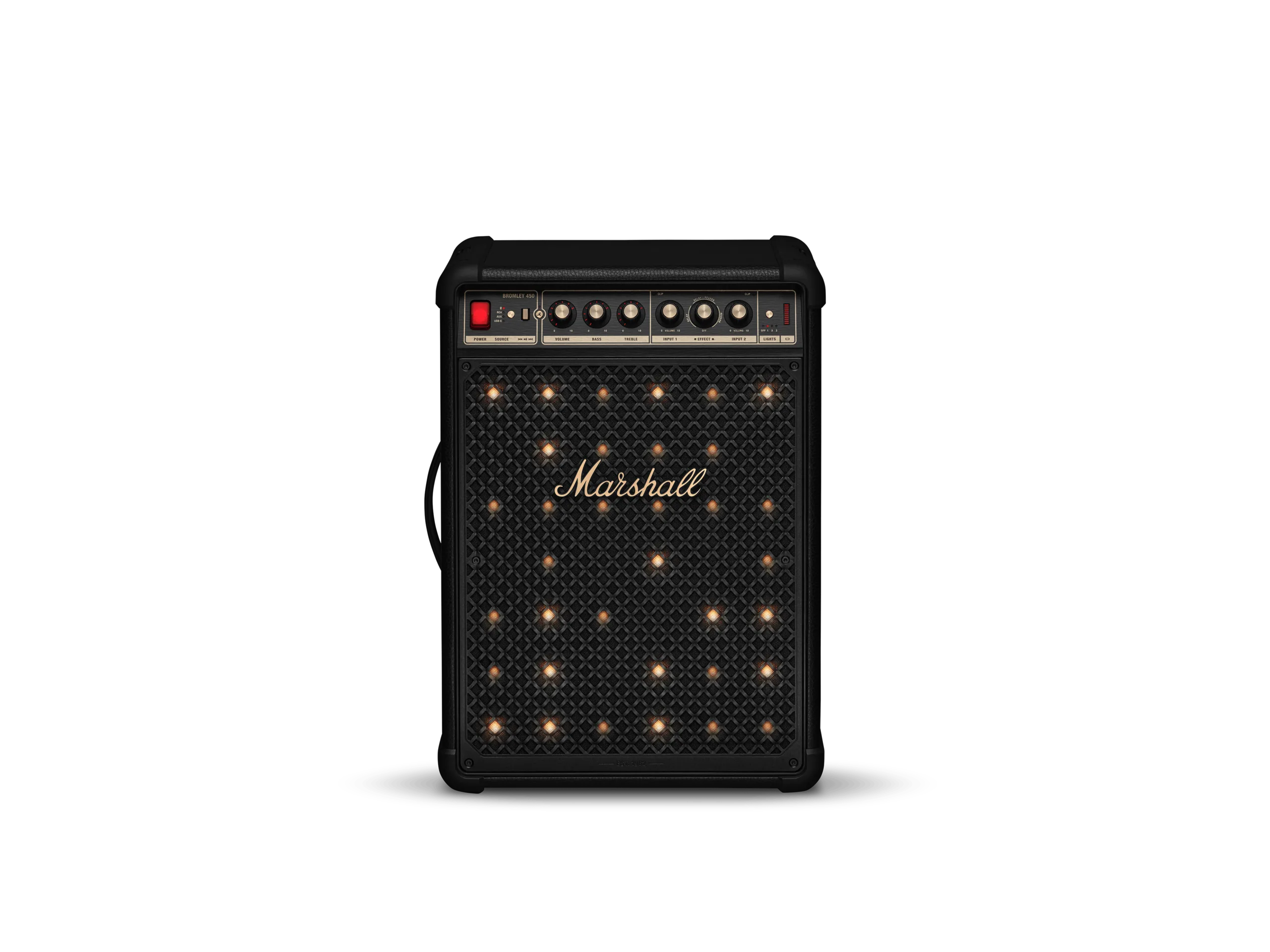 Bromley 450 采用了该公司标志性的放大器风格设计,带有黄铜装饰、触感控制旋钮和金属格栅,格栅上还带有灯光效果。根据新闻资料,灯光效果的灵感来自 20 世纪 70 年代音乐会的舞台灯光,可在三种预设模式下运行,包括环境照明和两种音乐反应选项。