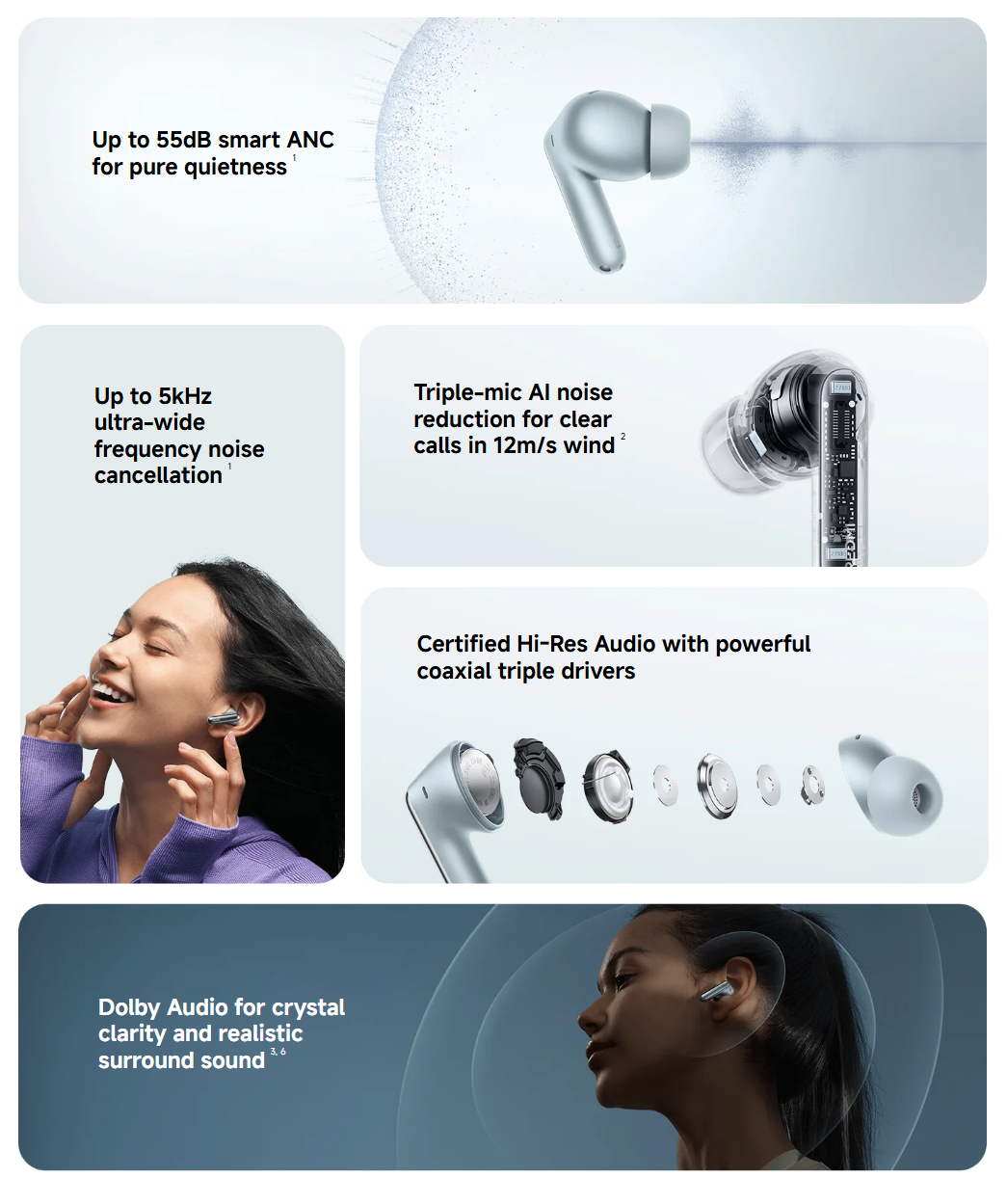 红米 Buds 8 Pro 将在全球范围内推出云白色、冰川蓝和曜石黑三种颜色,均配备 54 毫安时电池和 480 毫安时电池,装在配套的充电盒中。小米还在每个耳塞上安装了支持蓝牙 5.4 的调制解调器和三个麦克风,有助于提供高达 55 分贝的主动降噪(ANC)。