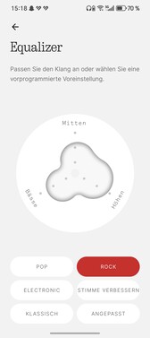 40 毫米驱动器可提供丰富的低音,并可通过滑动开关进行调节。CMF Heaphone Pro 可为人声提供圆润的中音和相当精确的高音,但在超高音域,价格优势有时会变得很明显,因为这些频率并不总是能清晰地再现。中音并不突出,但可以通过均衡器轻松弥补。LDAC 可提供高保真细节,也可选择音频插孔(3.5 毫米)。无法通过 USB 输出声音。总体而言,CMF 耳机 Pro 的音质非常出色。