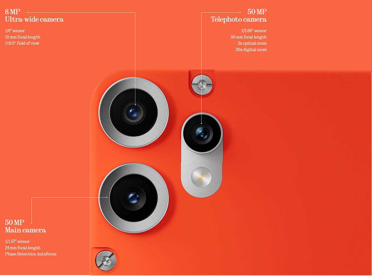 背面还有第三个摄像头,是一个 800 万像素的超广角摄像头。前置则是与 CMF Phone 1 相同的 1600 万像素自拍镜头。摄像头的亮点还不止于此,新款 Phone 2 Pro 的摄像头设置现在是 "模块化 "的。