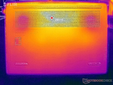 由于内部有对称的冷却解决方案,表面温度的发展是对称的。键盘中心最热的地方可以达到40摄氏度,这与我们在竞争产品上记录的情况相似。 戴尔Inspiron 14 Plus在类似条件下的温度。