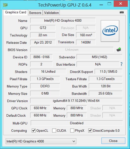 英特尔高清显卡4000 GPU是负责视频输出。支持DirectX 11和350和1100兆赫的时钟速度之间。