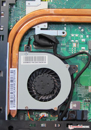 The CR41 proves to be very easy to maintain. The big maintenance cover allows accessing the working memory, hard drive, Wi-Fi module, fan and processor. Both working memory banks in the 14-incher sport a 4 GB module. Thus, the device is equipped with the maximum 8 GB specified by the manufacturer. The hard drive could be replaced quickly. Simply pull out the old drive, fasten the new drive to the hard drive bezel and insert it into the laptop again - ready. We appreciate the full access to the fan. It could even be easily removed for cleaning. It is also possible to access the processor.