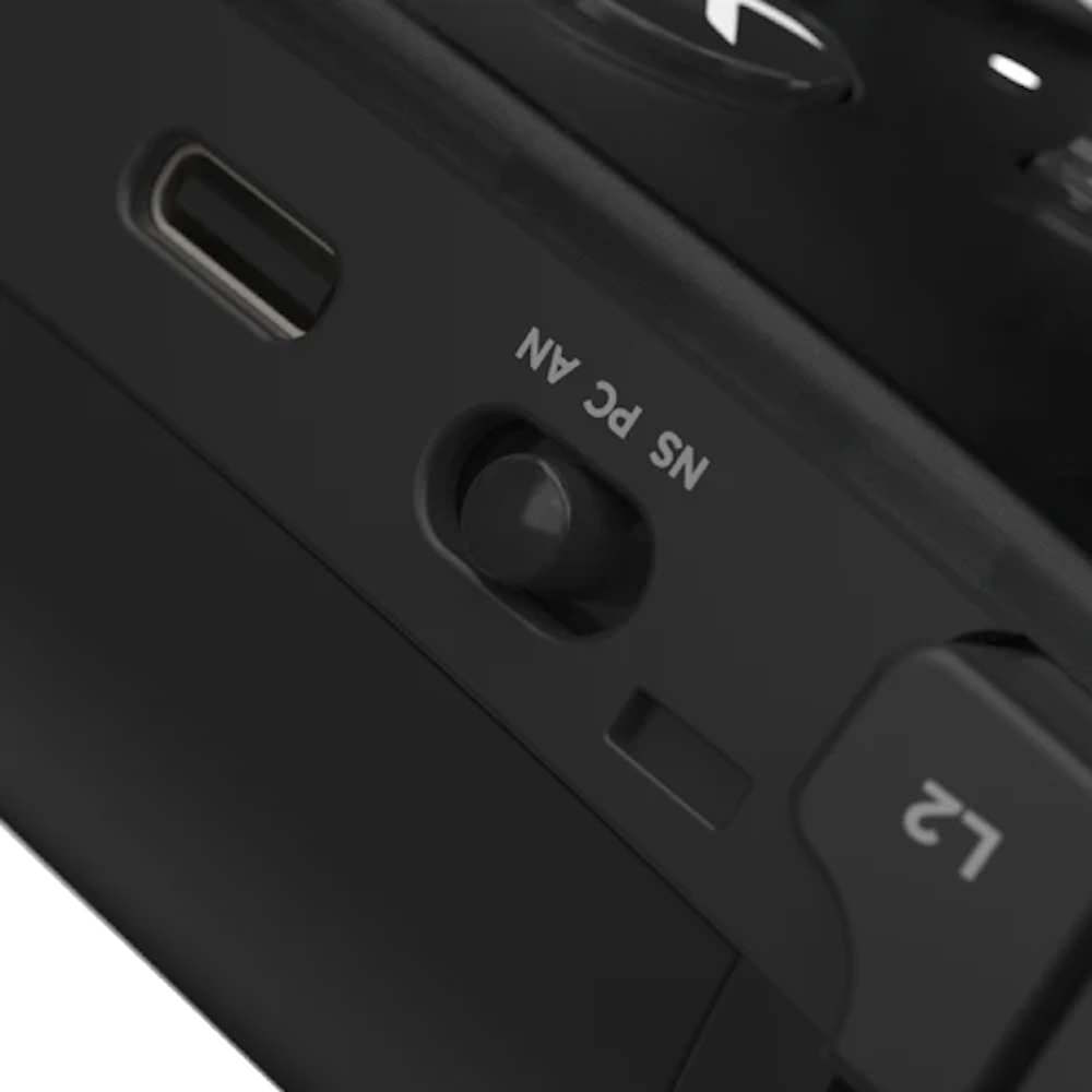 ULT Pro 具有霍尔效应触发器,可通过开关调节行程。虽然它配备了可充电电池,但用户也可以将其换成标准 AA 电池。D-pad 和操纵杆盖同样可以更换。包装盒内还有一个充电站。控制器支持蓝牙和 2.4 GHz 无线连接,确保与智能手机以及 Switch 1 和 Switch 2 兼容。通过电缆与电脑连接时,ULT Pro 支持最大 1,000 Hz 的轮询率。