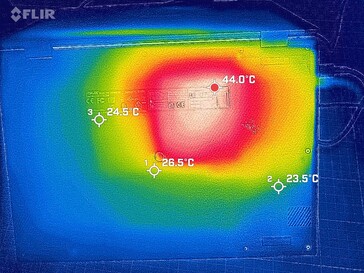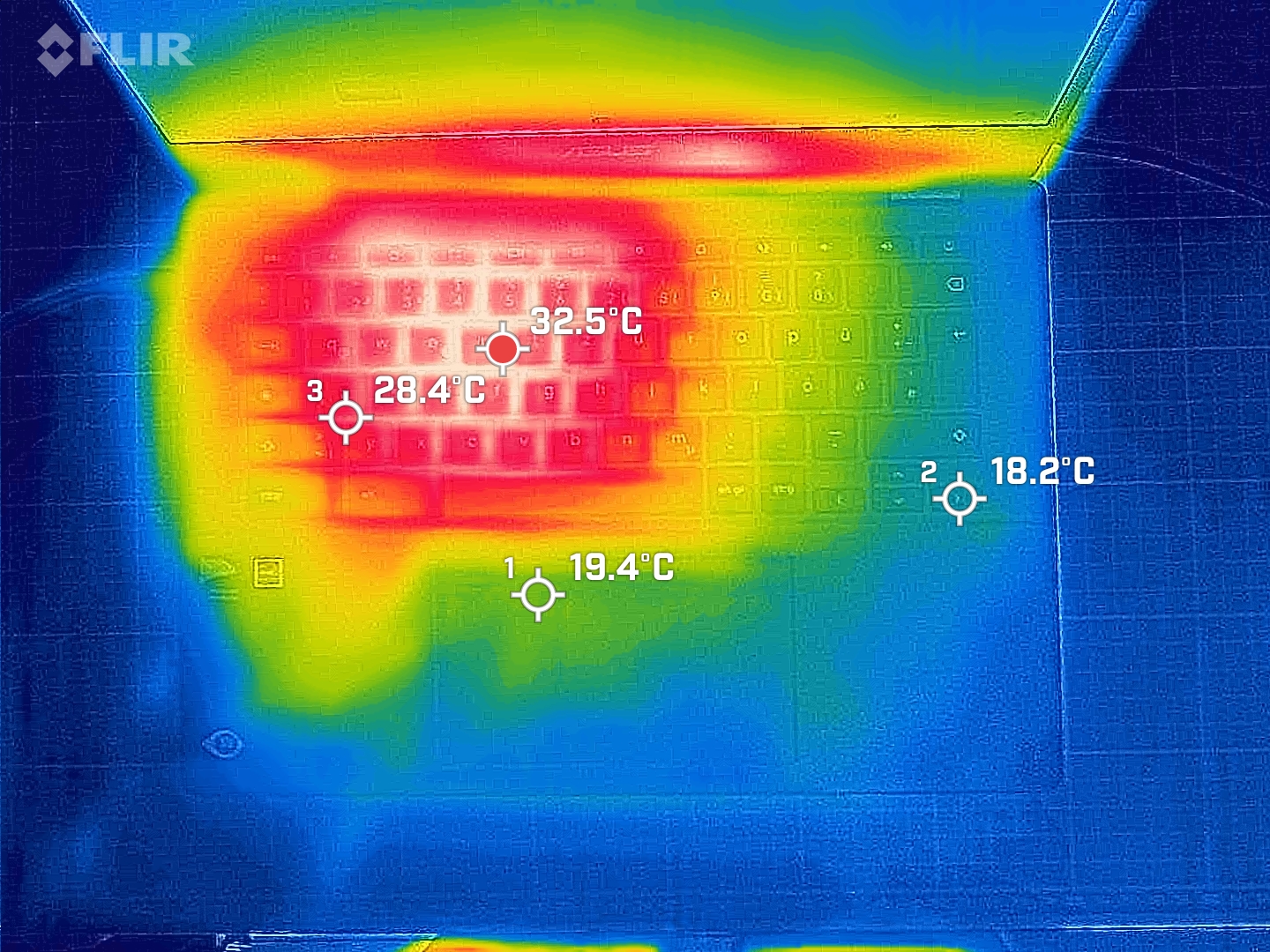 (+) The palmrests and touchpad are cooler than skin temperature with a maximum of 22.9 °C / 73.2 F and are therefore cool to the touch.