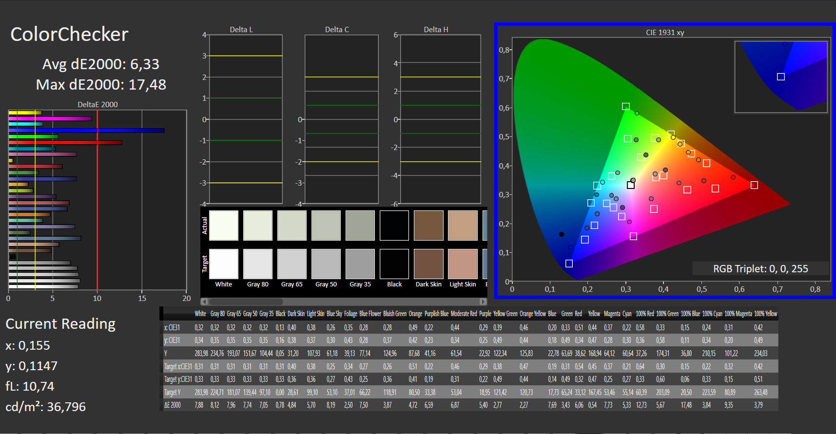 ΔE ColorChecker Calman: 6.33 | ∀{0.5-29.43 Ø4.78}