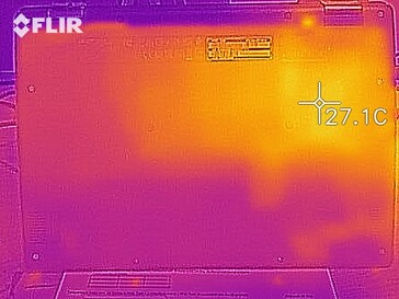 (+) The palmrests and touchpad are cooler than skin temperature with a maximum of 26.5 °C / 79.7 F and are therefore cool to the touch.