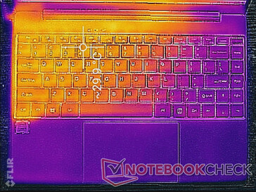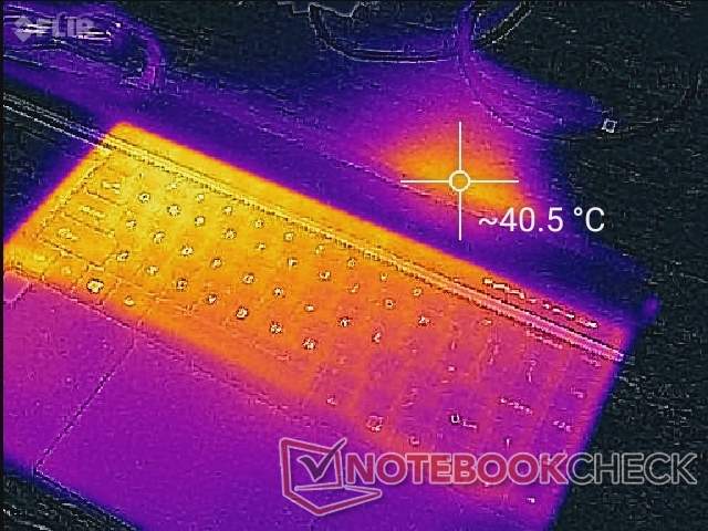 (+) The palmrests and touchpad are reaching skin temperature as a maximum (32.4 °C / 90.3 F) and are therefore not hot.