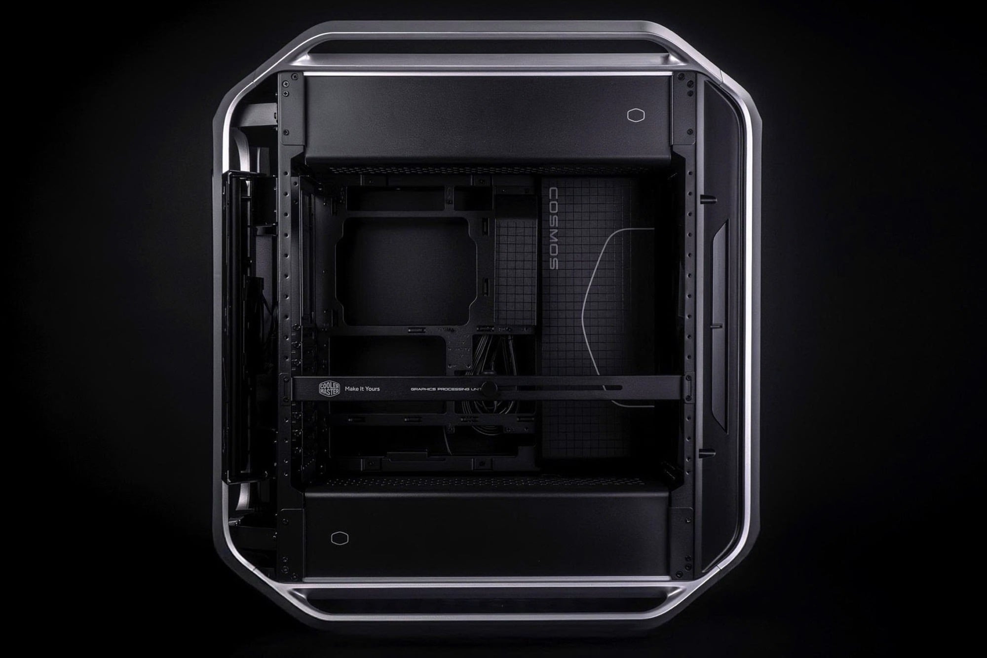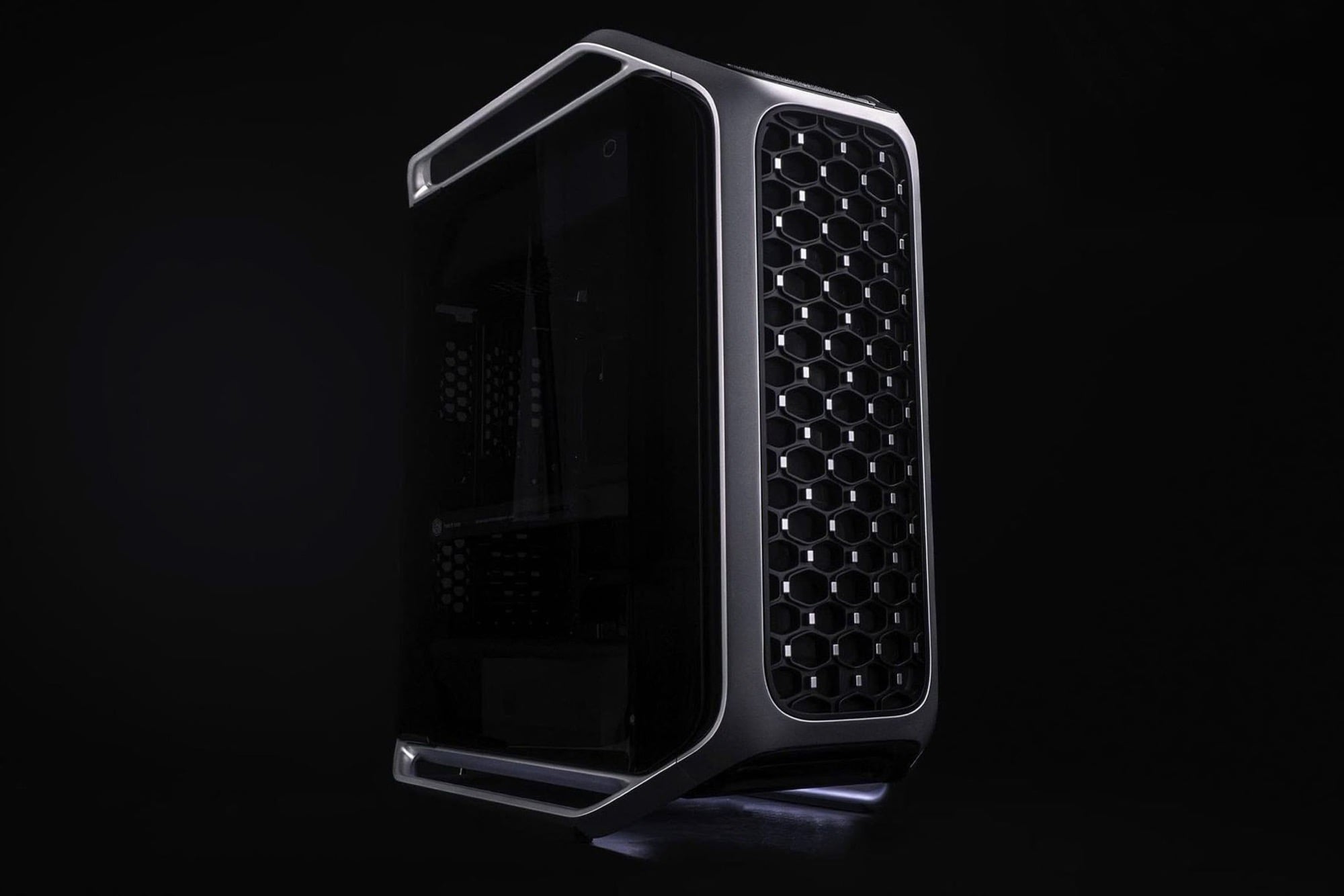 Cooler Master Cosmos Alpha 是一款全新的旗舰级 PC 塔式机箱,它将铝合金框架与玻璃侧板相结合。框架与脚垫和把手无缝衔接,简化了运输。前面板采用穿孔设计,以最大限度地提高后面风扇的气流。