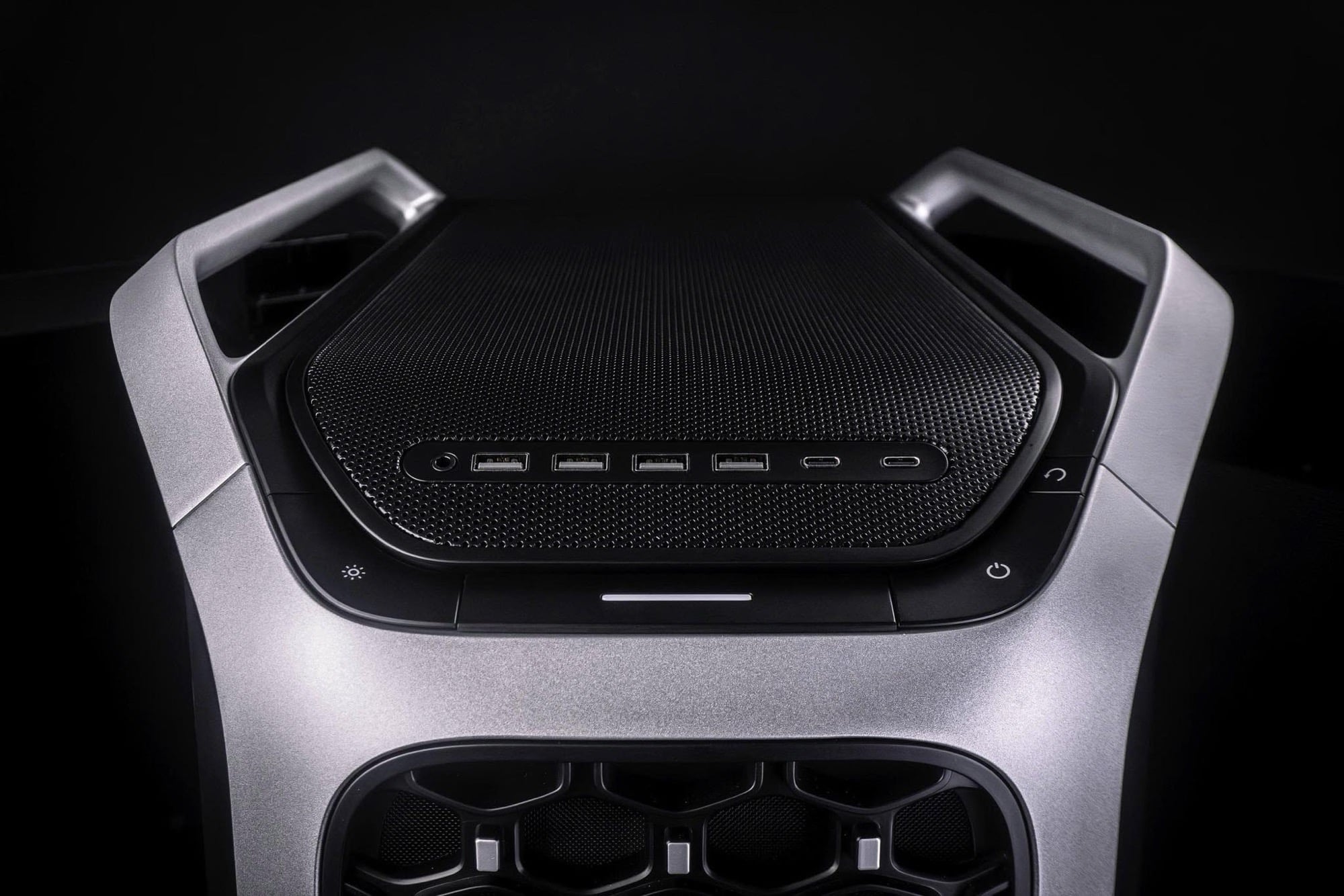 底部的 LED 灯带提供间接照明,可通过机箱顶部的专用按钮进行控制。按钮旁边是四个 USB-A 端口、两个 USB-C 端口和一个 3.5 毫米耳机插孔。连接耳机的麦克风可通过机箱上的按钮静音。Cooler Master 尚未确认所有规格;产品页面在发布后不久就下线了,但预计很快就会恢复。