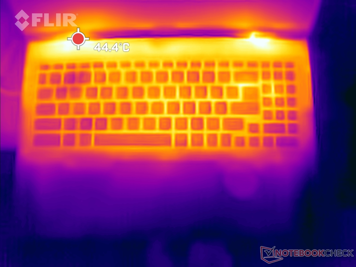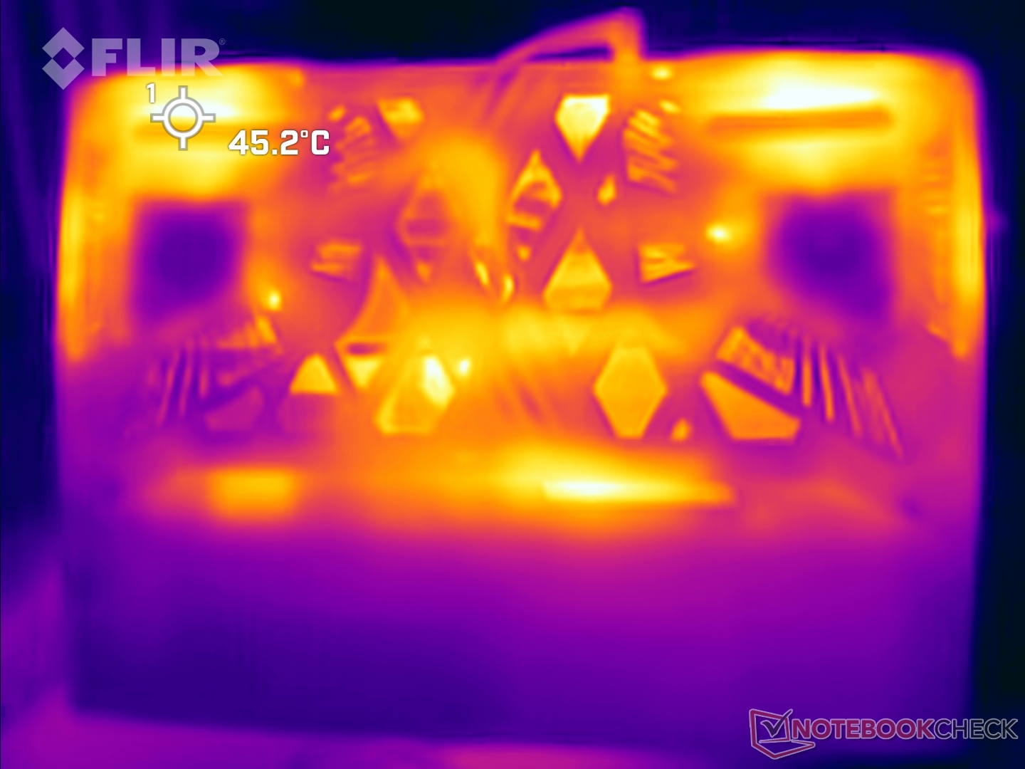 (±) The maximum temperature on the upper side is 44.8 °C / 113 F, compared to the average of 40.5 °C / 105 F, ranging from 21.2 to 68.8 °C for the class Gaming.