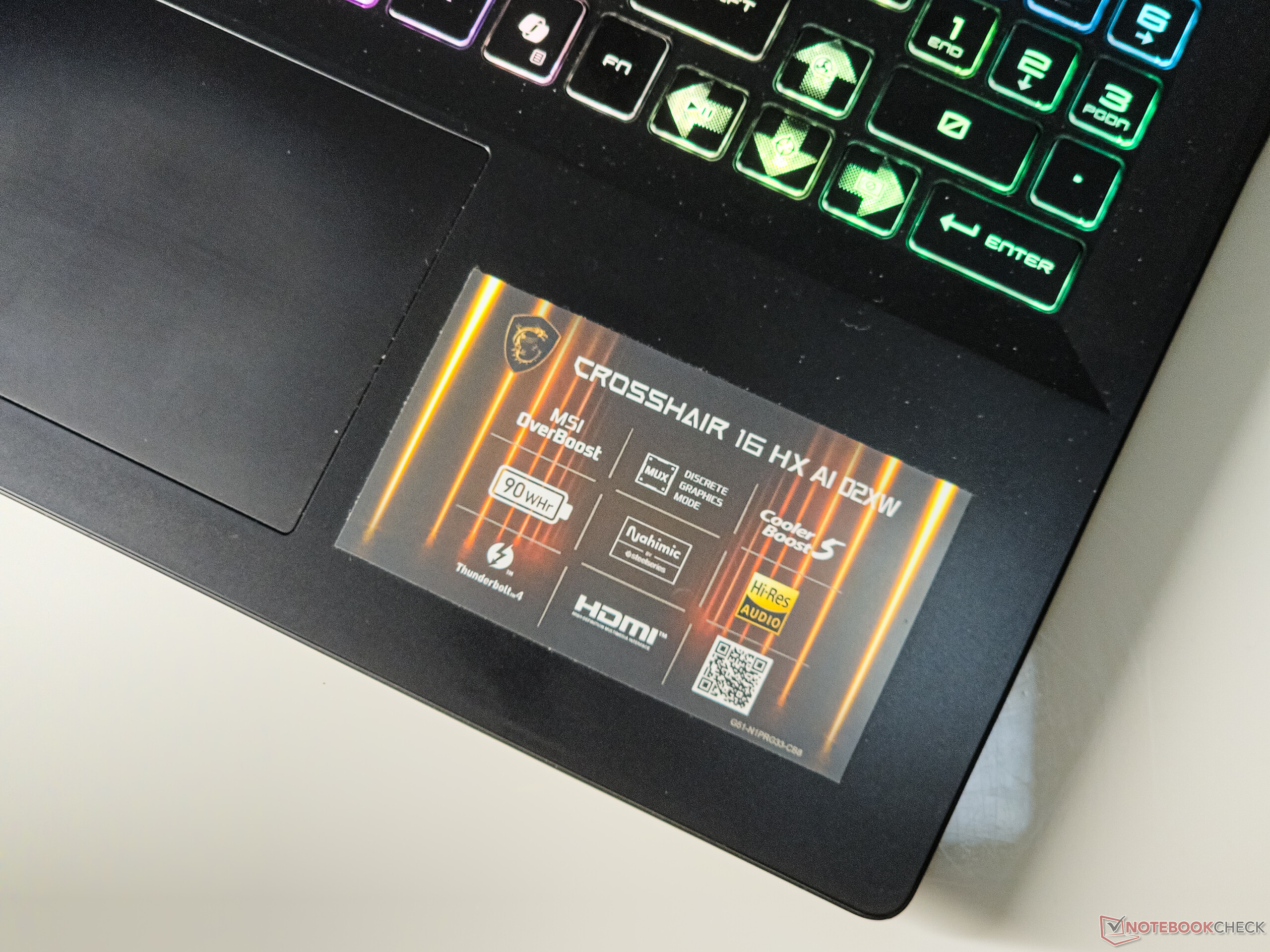 Notebookcheck 对微星 Crosshair 16 HX AI 的总体印象