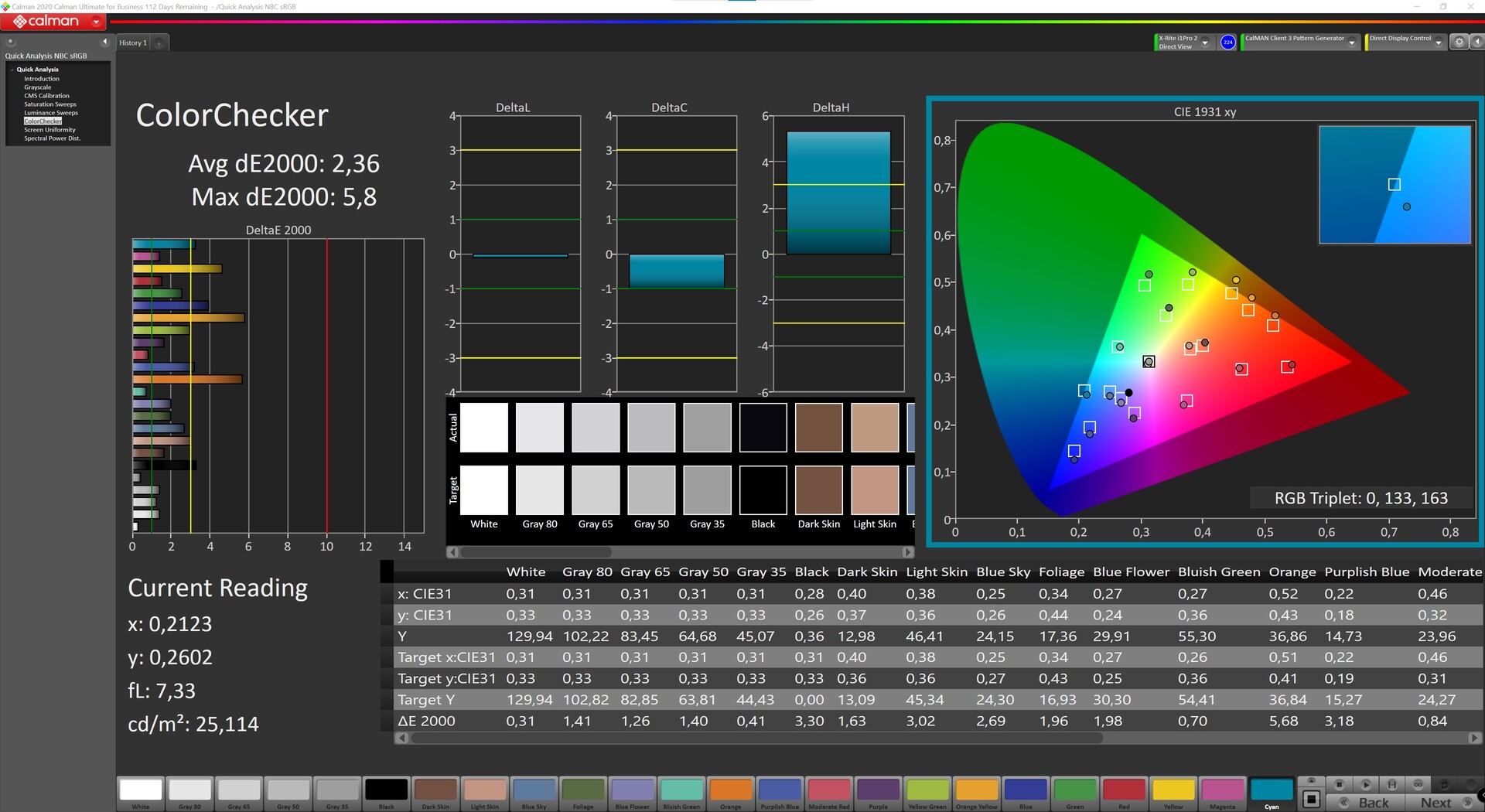| Colorchecker dE 2000 calibrated * | 2.36 |